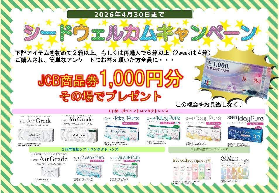 シードウェルカムキャンペーン 初めて購入サポートキャンペーン 初めて マイデイ:クラリティワンディ:バイオフィニティ 2箱以上購入の方 2026年4月1日より マイデイ トーリック90枚入り 90°180°に限り新発売 エアオプティクスシリーズ+クリアケアセット エアオプティクスシリーズ2箱とクリアケア3本パックを特別価格で販売中!エアオプティクスシリーズ: エアオプティクスEX エアオプティクス プラス ハイドログライド エアオプティクス乱視用 エアオプティクス遠近両用 まどかコンタクトレンズのご紹介 コンタクトレンズについて おトクなお知らせ 販売商品一覧 アクセス